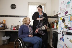 Our innovative small household living approach and the building itself are designed with integrated dementia care in mind and for people living with restricted mobility.